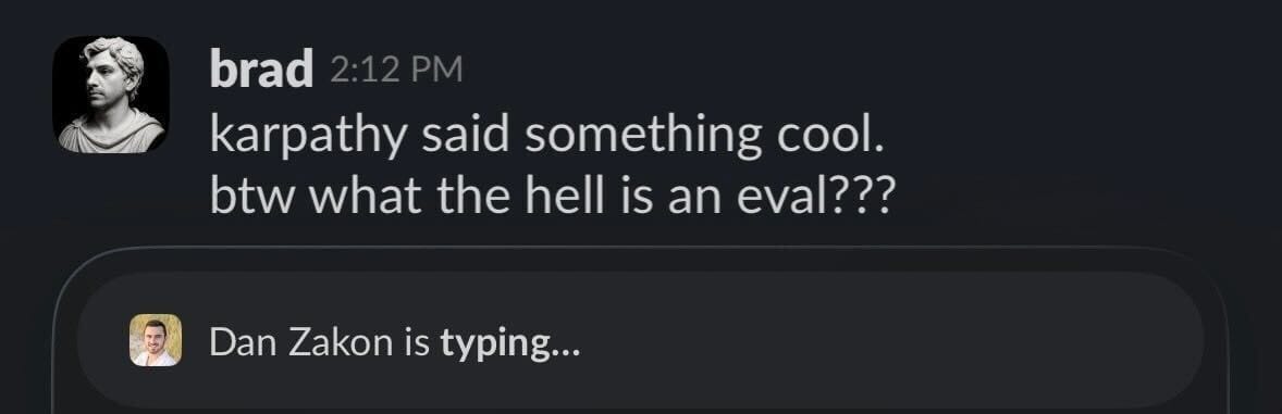 background: Karpathy’s Software 2.0 only works when the machine can verify its own work. Evals are how you create that verification. Think of them as drug trials for prompts and AI products: controlled inputs, measurable outcomes, and no room for guesswork/vibe coding.